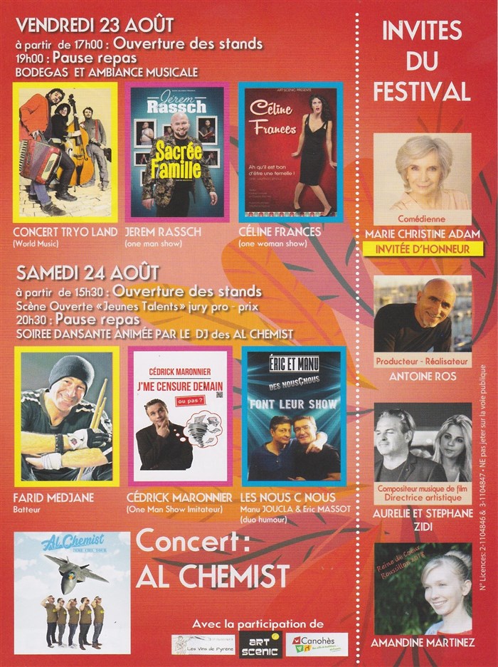 Festival alternant One/Woman shows humoristiques et Concerts musicaux festifs.