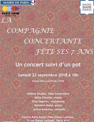 La Compagnie Concertante est une association dont le but est de promouvoir la musique de chambre. Comme chaque année, elle organise dans une ambiance détendue et amicale un concert suivi d'un pot, où petits et grands de tous horizons sont les bienvenus !