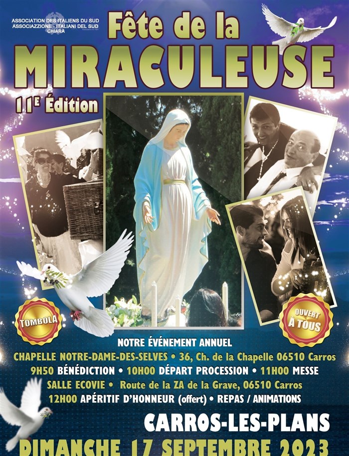Ne manquez pas la 11ème édition de La Fête de la Miraculeuse à Carros le 17 septembre 2023 !