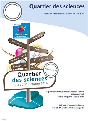 Retrouvez les chercheurs et les élèves ingénieurs de l'ESPCI ParisTech pour des conférences et des promenades de stands en stands, où ils vous présenteront leurs manips et vous parleront de leurs recherches et de leur vie professionnelle au quotidien.