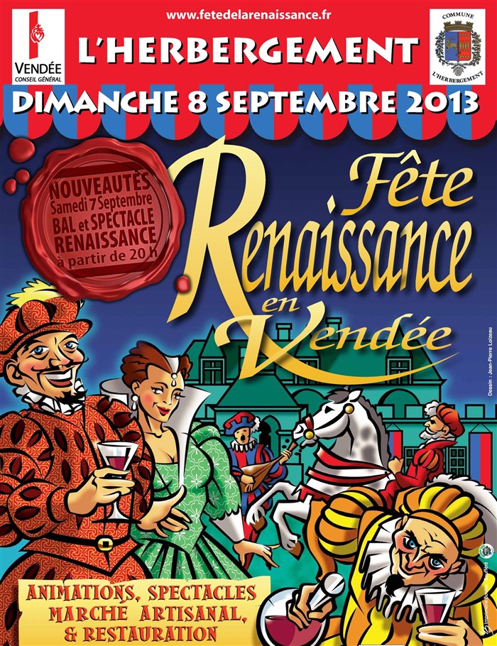Le 8 septembre 2013, la commune de L'Herbergement en Vendée remontera une nouvelle fois le temps pour célébrer ses foires qui durent depuis 1569. Dans un décor Renaissance reconstitué avec son château et sa rue commerçante, plongez dans l'ambiance des foires d'antan avec les 20 000 visiteurs de la Fête Renaissance.