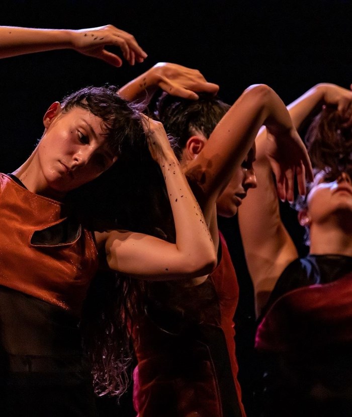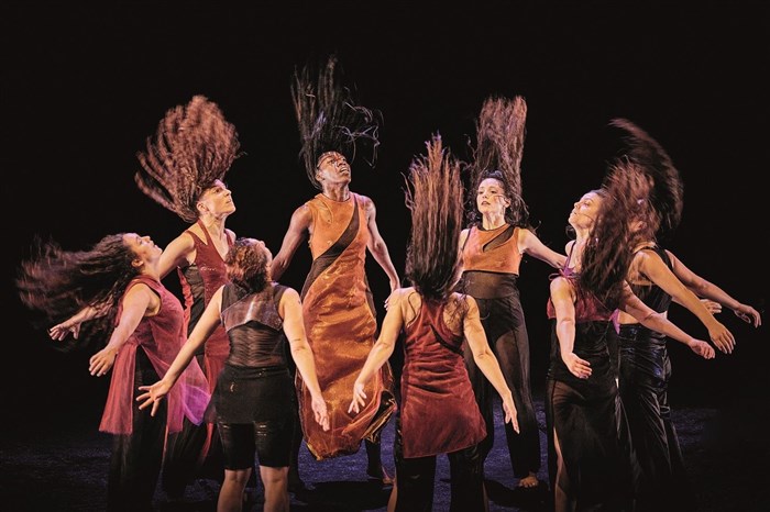Le chorégraphe précipite neuf danseuses dans un mouvement circulaire, où l'énergie se propage de proche en proche avec la vigueur d'un incendie.