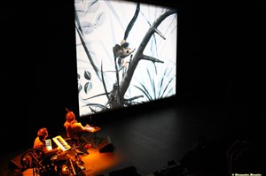 Avec Pierre Caillot aux percussions, David Sire accompagne quatre films en mots et en musique et charme petits et grands.