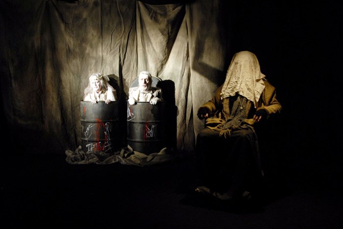 Aveugle et cloué à son fauteuil, Hamm n'a d'autre jeu que tyranniser son esclave Clov.