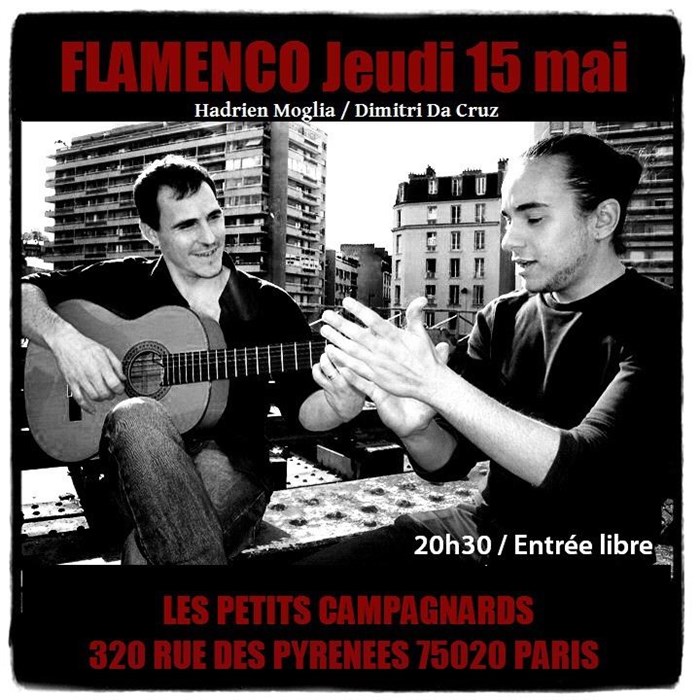 Retrouvez deux jeunes artistes , Hadrien Moglia à la guitare et Dimitri Da Cruz au chant pour une soirée purement flamenca ! Venez faire voyager vos sens dans une ambiance digne des "tablaos" andalous.