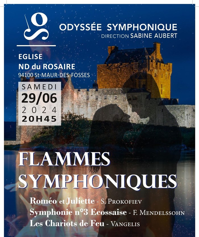 L'orchestre Odyssée Symphonique vous apportera cette flamme exprimée dans la musique symphonique à travers les oeuvres de Prokofiev, Mendelssohn, Vangelis et John Williams.