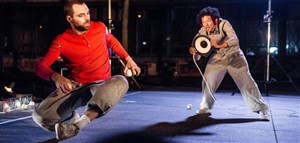 Pas de course à la performance ou aux figures virtuoses pour ces jongleurs, mais place à la beauté des images et des mouvements mêlant mime et danse.