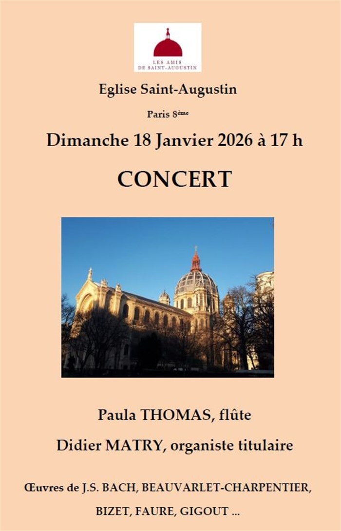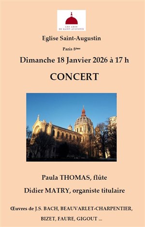 Découvre Flûte et orgue à St-Augustin, qui fait partie de notre sélection d’événements de type Musique classique et qui se tient ici : Eglise Saint-Augustin -