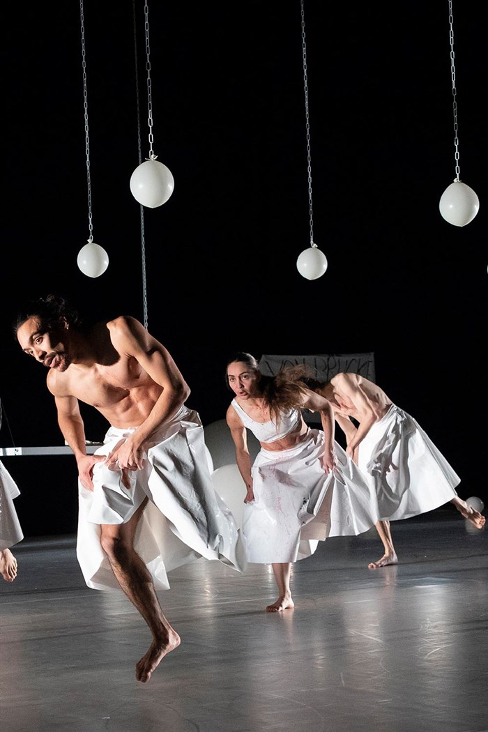 De ce matériau, la chorégraphe suisse et ses danseurs tirent une série de miniatures captivantes, désarçonnantes et ludiques, où les vivants défuntent, mais où, à la fin des fins, rien ne finit.