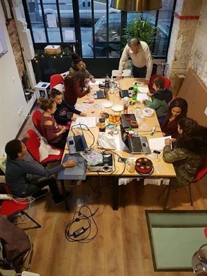 Les enfants sont accueillis par petits groupes de 5 à 10 par animateur dans une jolie salle de formation neuve et vitrée donnant sur une rue calme. Les parents sont accueillis et peuvent rester sans payer. Mais comme les parents ont toujours des choses inutiles à faire, ils peuvent s'absenter à tout moment pour revenir chercher les enfants à la fin. (Attention, certains enfants refusent de partir, par enthousiasme et pour se lancer dans un nouveau travail en 3D !)