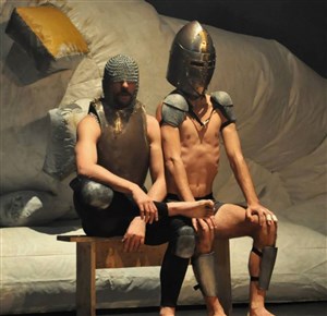 Dans Fort, les deux acrobates et frères de cirque, Mathieu Lagaillarde et Thibaut Brignier, interrogent le pouvoir, le tournent en dérision avec une armure de chevalier ou en costume de princesse, s'adonnent à quelques chants polyphoniques, racontent des histoires et tout ça, en s'accompagnant d'un gros château gonflable !