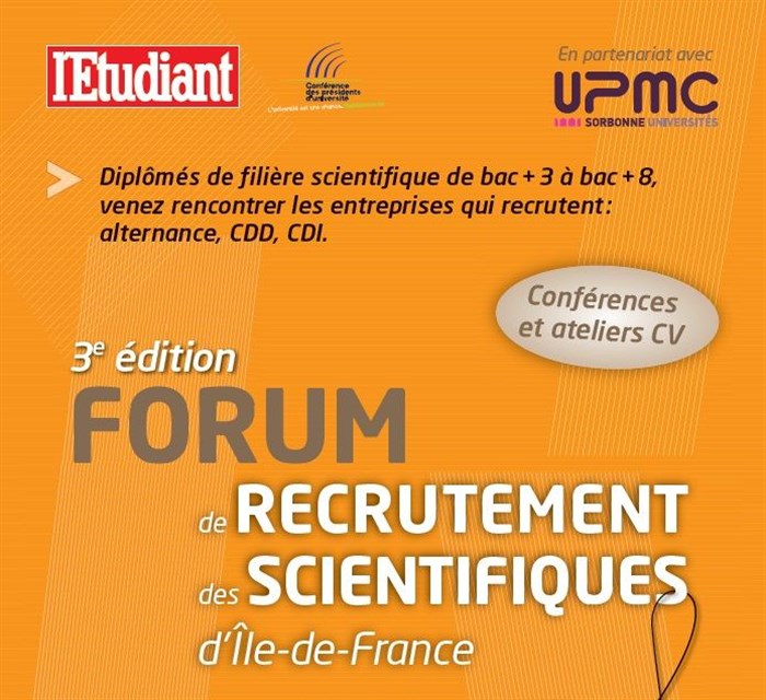 L'Etudiant en partenariat avec l'UPMC organise ce forum à destination des scientifiques de bac+3 à bac+8.
