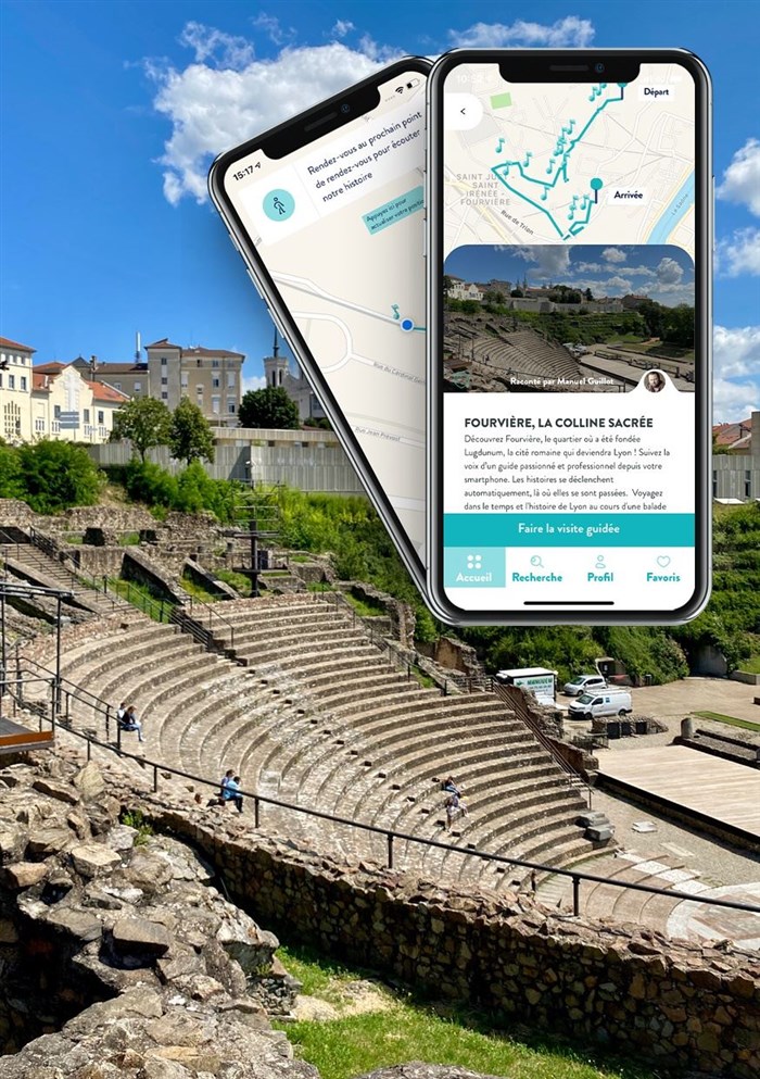 Découvrez Fourvière, le quartier où a été fondée Lugdunum, la cité romaine qui deviendra Lyon ! Suivez la voix d'un guide passionné et professionnel depuis votre smartphone. Les histoires se déclenchent automatiquement, là où elles se sont passées.