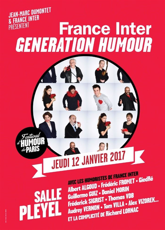 Ces chroniqueurs qui nous font rire et réfléchir sont aussi des artistes dont le talent s'exprime sur scène. Avec France Inter : Génération Humour, le FUP (Festival d'Humour de Paris) et France Inter vous proposent de les découvrir dans une soirée unique, à Pleyel le 12 janvier 2017. Si " vous êtes bien sur France Inter ", vous serez aux anges à Pleyel.