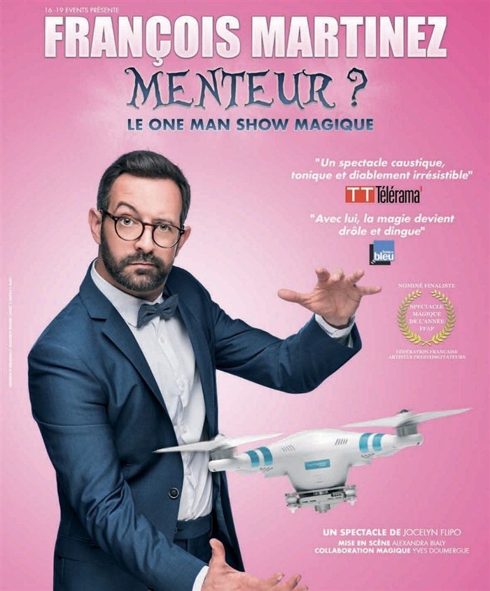 Après "Harry Potter et moi" nommé spectacle magique 2016, François Martinez revient avec un nouveau show magique et enchaîne les exploits les plus improbables. Telerama ne s'y est d'ailleurs pas trompé en accordant 2T à ce spectacle et consacrant une page "tête d'affiche" à François.