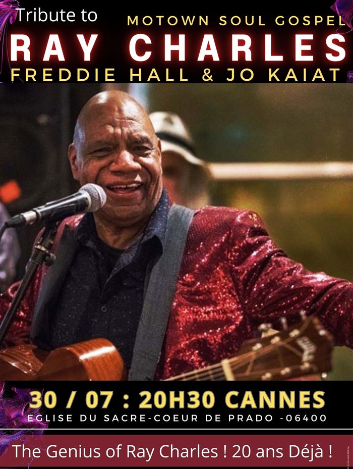 The Genuis of Ray Charles nous a quittés le 10 juin 2004. 20 ans déjà ! Freddie Hall interprétera du Gospel, de la Soul Music et du Motown en rendant hommage à Ray Charles. Il sera accompagné du célèbre pianiste niçois Jo Kaiat.