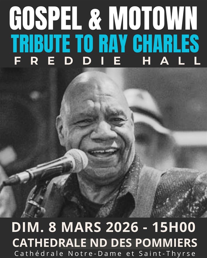 Découvre Freddie Hall - Tribute to Ray Charles - Soul - Gospel, qui fait partie de notre sélection d’événements de type Jazz / Blues / Gospel et qui se tient ici : Cathédrale Notre-Dame-des-Pommiers -