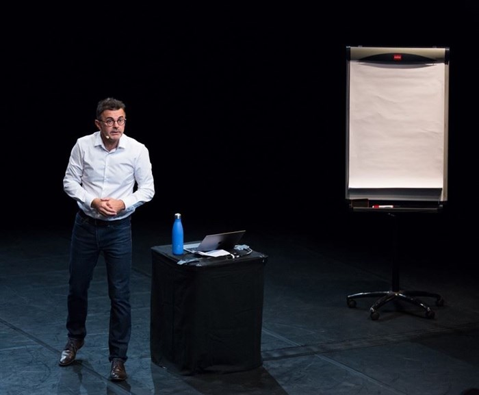 Sportif accompli dans le demi-fond de la digression, Frédéric Ferrer est aussi un sprinter de la formule, jamais à bout de souffle : "Si on se fiait à l'étymologie, on devrait parler d'Agonie olympique !" affirme-t-il en conférencier affûté à l'athlétisme du rire.