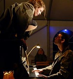 Spectacle d'agitation pour une comédienne et un pianiste.