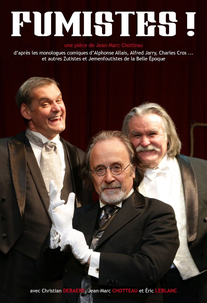 Avec Fumistes, Chotteau nous fait rentrer un soir de l'été 1914 dans les coulisses d'un café-concert parisien où trois acteurs s'apprêtent, à travers un florilège de monologues " fumistes " aussi irrésistibles les uns que les autres, à rendre hommage à un mouvement du même nom qui inventa trente ans plus tôt avec Charles Cros, Alphonse Allais, Alfred Jarry, Eric Satie et beaucoup d'autres, un rire nouveau, " hénaurme ", fait de non-sens et de provocation. Les trois personnages rivalisant de cabotinage, leur spectacle se terminera dans un désordre hellzapopinesque... On ignore que bientôt la conflagration sera mondiale. C'est la Belle Époque !