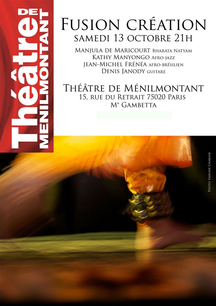 Rencontre de Manjula (Bharatanatyam) et de 3 artistes aux danses et musiques différentes (afro-brésilien/contemporain : Jean-Michel Frenea, Afro-jazz : Kathy Manyongo, guitare classique : Denis Janody).
