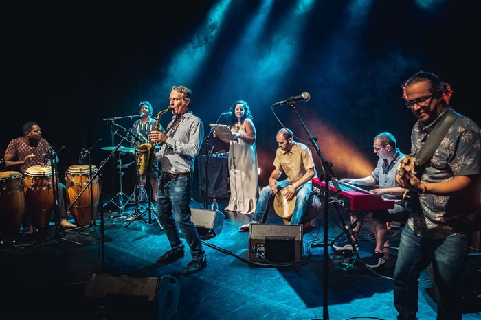 Sept musicien.ne.s uni.e.s par leur désir insatiable de partager leurs trésors mélodiques et rythmiques puisant aux sources du maloya, du jazz et de la funk pour une aventure culturelle trépidante entre La Réunion et la métropole.