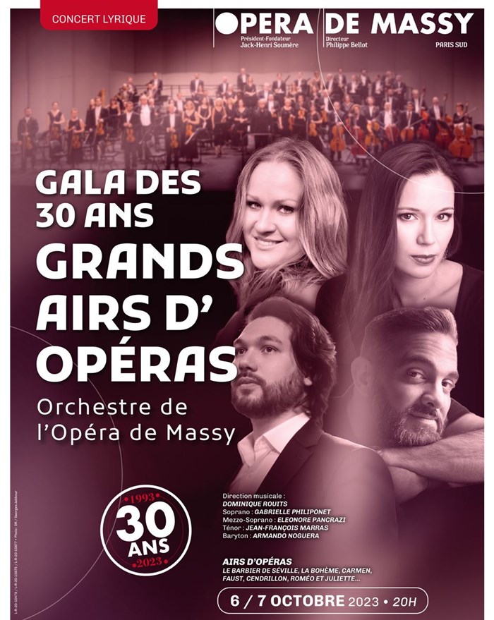 Un concert anniversaire à l'occasion des 30 ans de l'Opéra. Au programme, de belles pages lyriques du répertoire et qui ont marqué l'histoire de Massy.