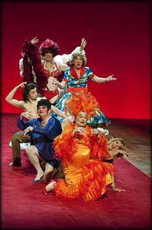 Entre deux perruques, un porte-jarretelle et une robe à fleurs, ces anciens transformistes investissent le plateau avec une énergie gouailleuse, rythmée par les airs de Dalida et Schubert