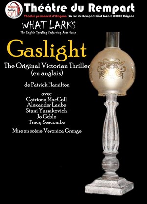 Surprenante pièce policière anglaise. Cette pièce célèbre intitulée "Gaslight" fut écrite par Patrick Hamilton et immortalisée au cinéma par Alfred Hitchcock avec Ingrid Bergman et Charles Boyer dans les rôles principaux. Dans cette mise en scène, Catriona MacColl, actrice anglaise qui se produit beaucoup à la télévision et au cinéma en France dans le rôle de Mrs Manningham et Alexander Laube, acteur anglais de Lyon dans le rôle du mari redoutable.