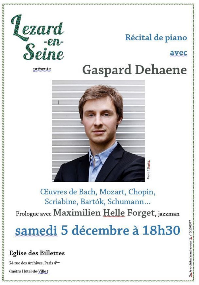 Récital de Gaspard Dehaene, avec, en prologue, Maximilien Helle-Forget, jazzman