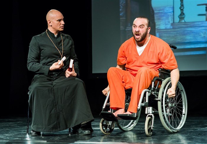 Cette fois, toujours en maniant l'art du rire et de l'émotion, il nous emmène dans l'histoire d'Ismaël qui – après avoir commis un attentat dans lequel plusieurs personnes ont été tuées et où il a perdu l'usage de ses jambes – est condamné à la prison à perpétuité. Là-bas, il rencontre un prêtre, commis d'office, avec qui le dialogue se noue. À l'hôpital, où il se rend régulièrement pour ses soins, il a des échanges cacophoniques avec une femme qui a perdu la raison. À trois, ils vous feront voyager dans un monde où l'antisémitisme, la haine de l'autre, l'intolérance religieuse, le racisme, la violence laissent subitement la place à quelque chose de nouveau.