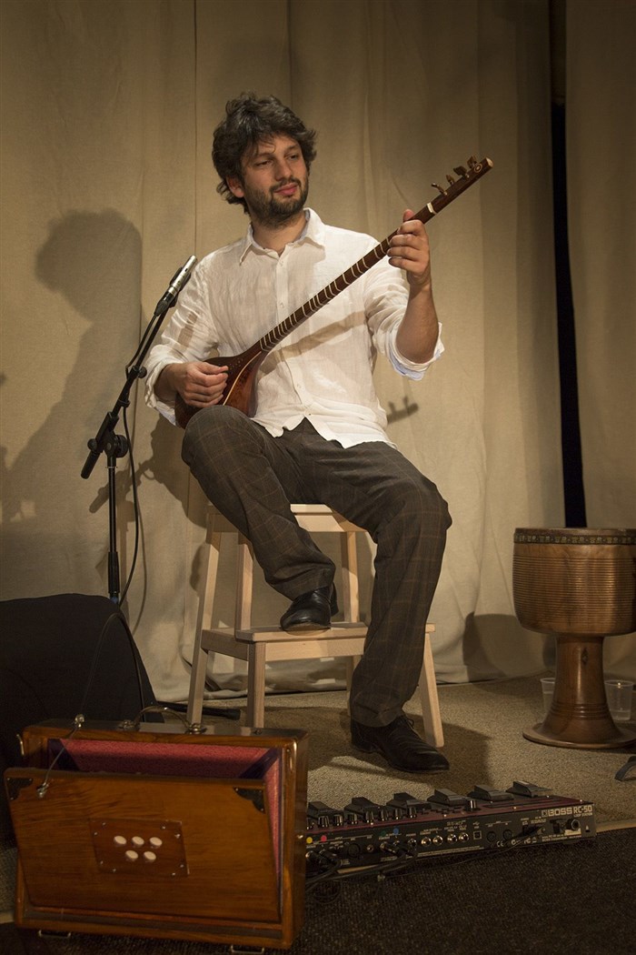 Par moments, il s'accompagne d'un instrument traditionnel persan, pour jouer tantôt de manière classique, tantôt en reggae ou en rap afin de souligner le lien entre l'Histoire et la représentation contemporaine.