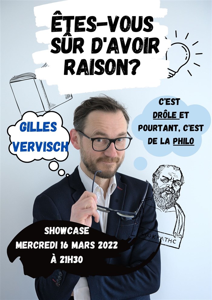 Connaissant Gilles Vervish par ses chroniques à la radio, ce fut une grande joie de le découvrir sur scène. On rêve tous d'avoir un prof de philo comme lui.