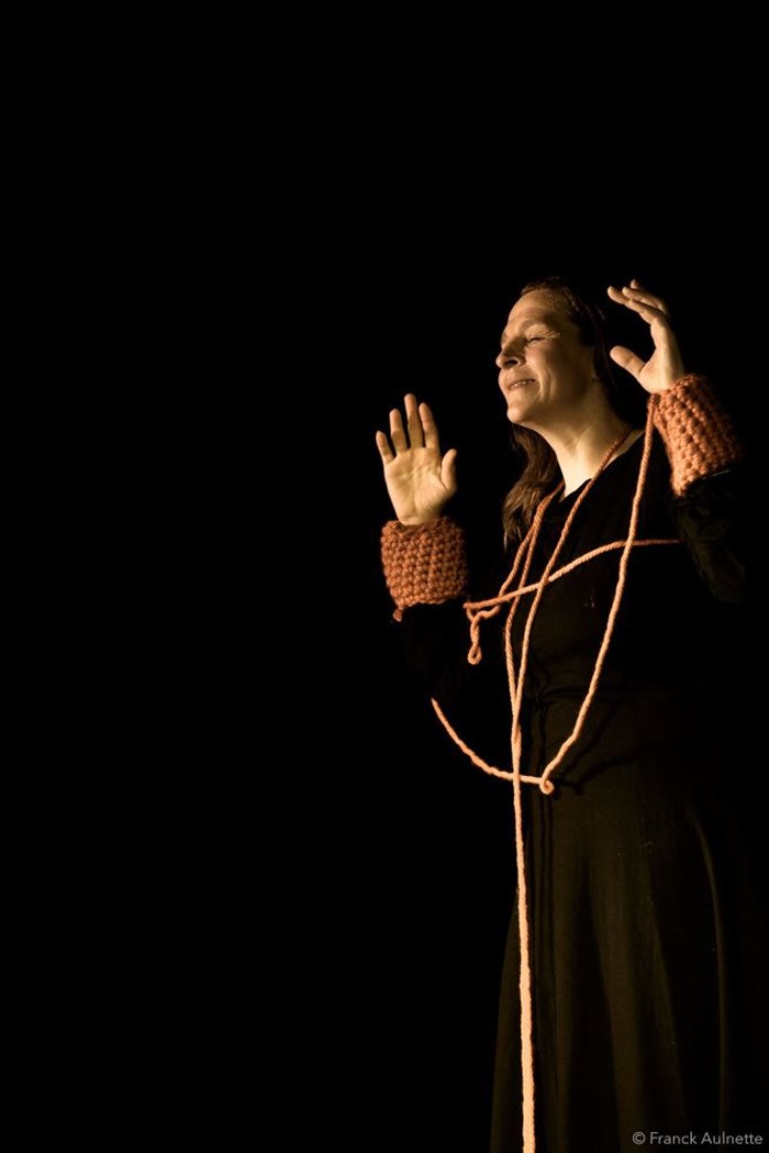 Descendante d'une famille profiteuse de la guerre, elle pose les questions de la responsabilité et de la culpabilité. Sur un fil de laine rouge, elle parcourt les secrets et les non-dits de la famille afin d'arriver au pardon nécessaire pour trouver la paix...