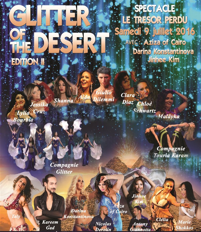 Entre modernité et traditions, les émotions se déchaînent, la culture de l'orient se mêle au rêve, une touche de métissage des danses, un soupçon de paillettes, Glitter of the Desert vous promet une soirée des plus magique.