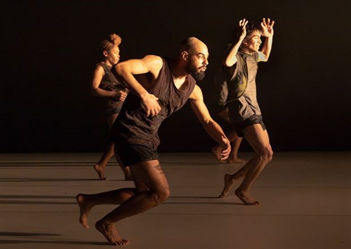 Gounouj signifie "grenouille" dans le créole de certaines régions de Guadeloupe, île d'origine de Léo Lérus. Depuis ce territoire luxuriant, le chorégraphe déploie un quatuor, où chaque interprète est relié par des tiges invisibles.