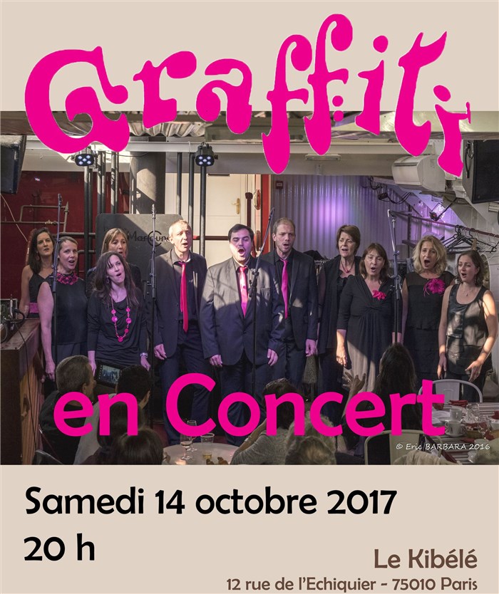 De la couleur, du caractère, un langage bien particulier, beaucoup de fantaisie et un brin de folie : voilà ce que les chanteurs de Graffiti essaient de rassembler avec rigueur et enthousiasme pour unir leurs voix. Depuis la création du groupe en 2006, ces chanteurs amateurs éclairés, tous passionnés de jazz polyphonique, mêlent leurs voix avec humour et déhanchés, sous la direction de Fanja Rahajason. Le répertoire vous fait découvrir Nougaro, Gershwin, Marc Berthoumieux, Dave Brubeck, Charlie Parker, Didier Lockwood, Take 6, The Real Group, Michael Jackson, avec des arrangements subtils allant de 4 à 6 voix parfois.
