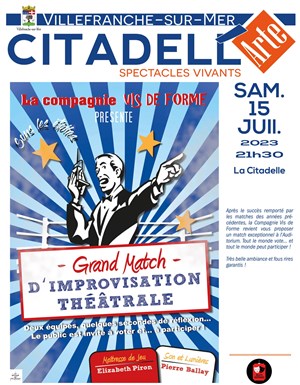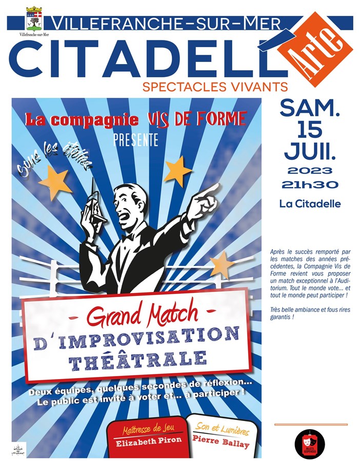 Après quatre saisons sous les étoiles, la Compagnie Vis de Forme revient vous proposer un match exceptionnel à l'Auditorium. Tout le monde vote... et tout le monde peut participer ! Très belle ambiance et fous rires garantis !