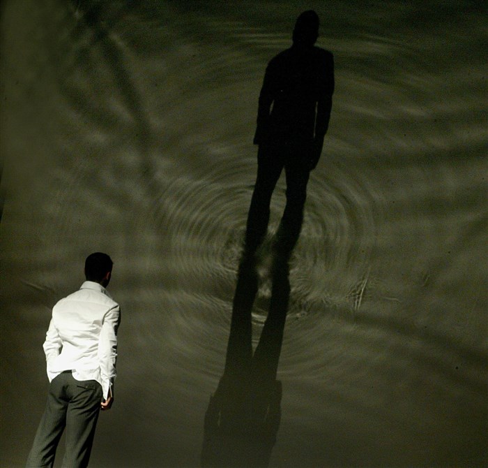 Gravité est une chorégraphie pour un corps sur un plan d'eau. Dans Solaire la pièce est un espace fait d'ombres et de lumières
