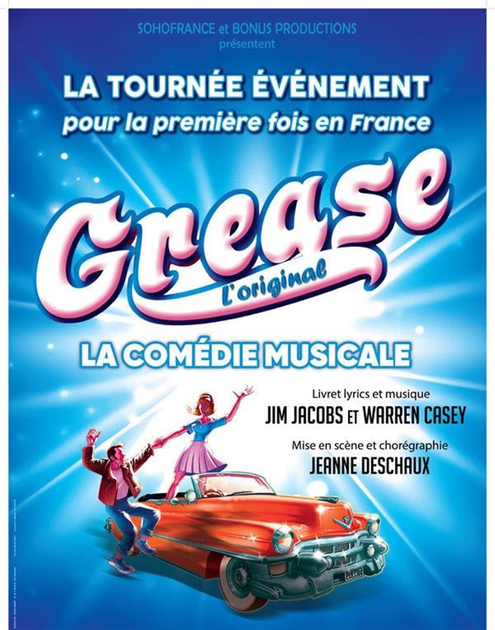 Toujours à l'affiche à New York et à Londres, Grease part enfin en tournée dans toute la France. Une adaptation française inédite dont les chansons resteront dans leur version originale en anglais et mise en scène par Jeanne Deschaux (Un Violon sur le Toit-Aladin- Nonnesens- La Revanche d'une Blonde-Grease 2010-La Petite Siréne... ).