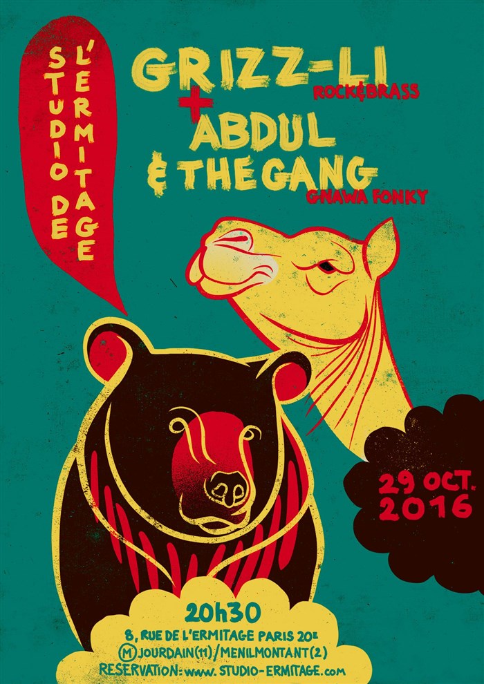 Le grizz-li (Ursus arctos horribilis) est un mammifère musical de la famille des ursidés, les griffes du rock rencontrent la douceur des cuivres. Grizz-Li partage la scène avec Abdul, ce trafiquant gnawa-fonky notoire à la tête de son Gang tonitruant.