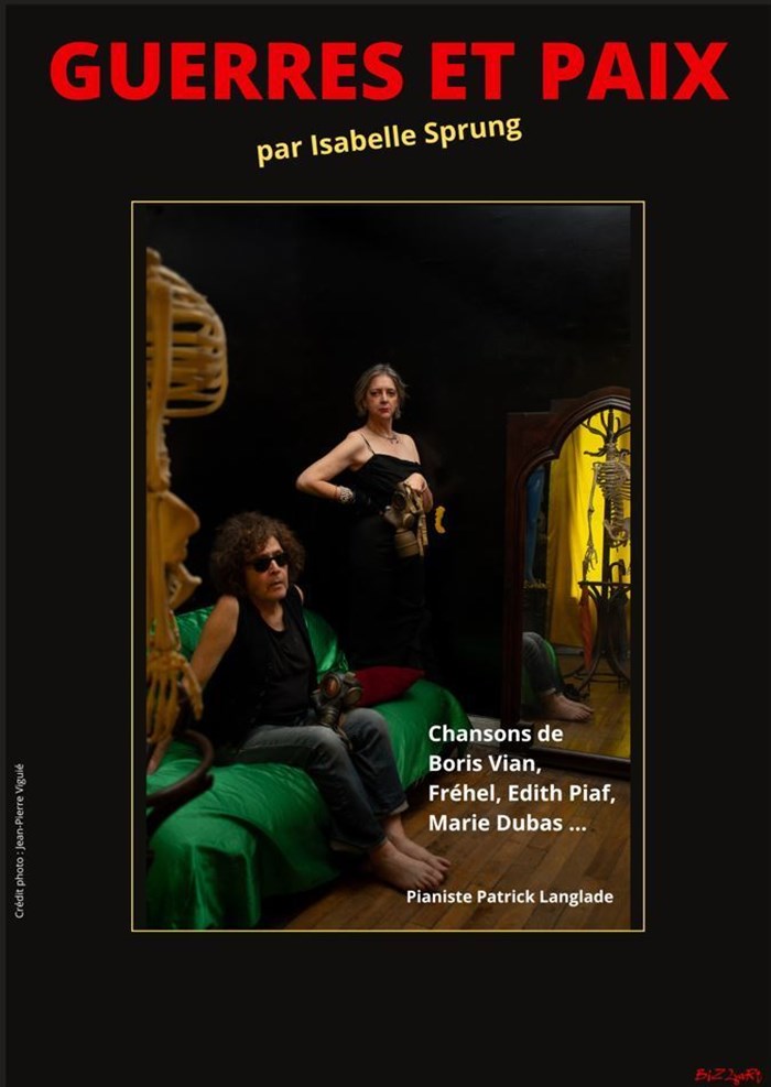 Cette fois, à l'occasion du nouveau spectacle Guerres et Paix, elle élargit le champ des possibles, et invite Barbara, Boris Vian, Edith Piaf, Fréhel, Marlène Dietrich, Jeanne Moreau, Ray Ventura ... qui restent si vivants dans notre mémoire !