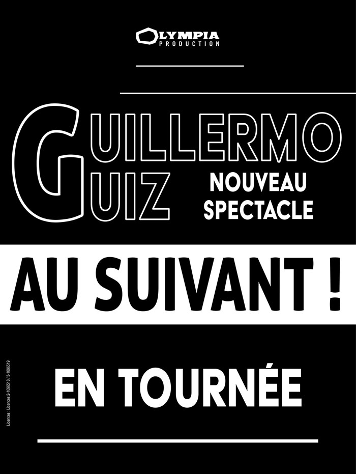 Après 2 saisons au Point-Virgule qui ont affiché complet, et 3 Bataclan à guichets fermés, Guillermo présentera son tout nouveau spectacle " Au suivant ! "