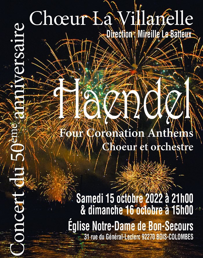 Haendel | 50ème Anniversaire Choeur La Villanelle, toutes les séances