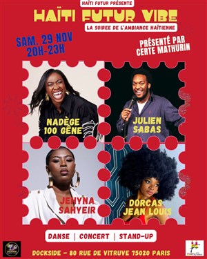 Plongez dans une ambiance 100% haïtienne, festive et vibrante, avec une programmation qui fait voyager entre danse, humour et musique live jusqu'au bout de la nuit !