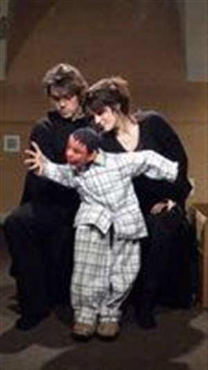 Au rythme de ses instruments, un percussionniste suit les mouvements des marionnettes et des acteurs, jouant avec eux, provoquant parfois l'action, ou l'accompagnant.