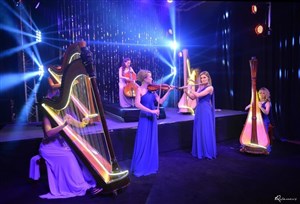 La magie des harpes illuminées, la virtuosité du violon, le chant d'une flûte, les notes profondes du violoncelle permettent à cette formation intimiste d'interpréter les plus beaux thèmes d'orchestre dans le respect des oeuvres originales.