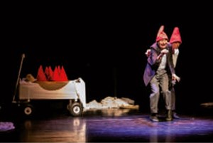L'histoire de Blanche-Neige mitonnée à la sauce fantaisie : prenez deux comédiens très expressifs et faites mijoter la sauce de Blanche Neige aux sept nains.