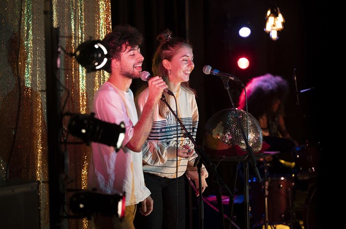 Le karaoké revient en force et prouve qu'il est bien plus qu'un simple divertissement. Propice au lâcher-prise, à la convivialité, à la joie, le voici au coeur d'une expérience hybride et immersive : une chanteuse-comédienne, une batteuse et une dessinatrice vous entraînent dans un jeu scénique où chaque tube permet d'explorer l'histoire du karaoké avec humour et piquant !