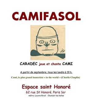 Cami fa sol... avec Hervé Caradec. Humour grinçant, absurde. Tout l'univers de la belle époque avec des textes et des chansons de Cami.